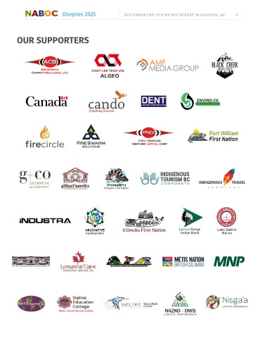 Osoyoos 2025 2 -4 ' , 7 OUR SUPPORTERS ACB ACB Aboriginal CapacityBuilders Ltd. ALGEO FIRST PEOPLES VENTURE CAPITAL CORP Lac La Ronge Lake Babine Indian Band Nation